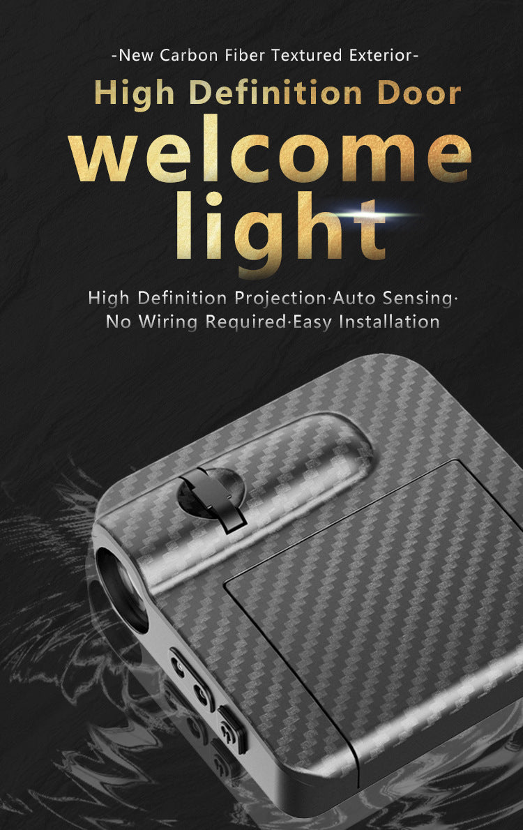 Auto Wireless Welcome Lights - Carbon Fiber Style, Logo Projector + Infrared Sensing, No Wiring Needed