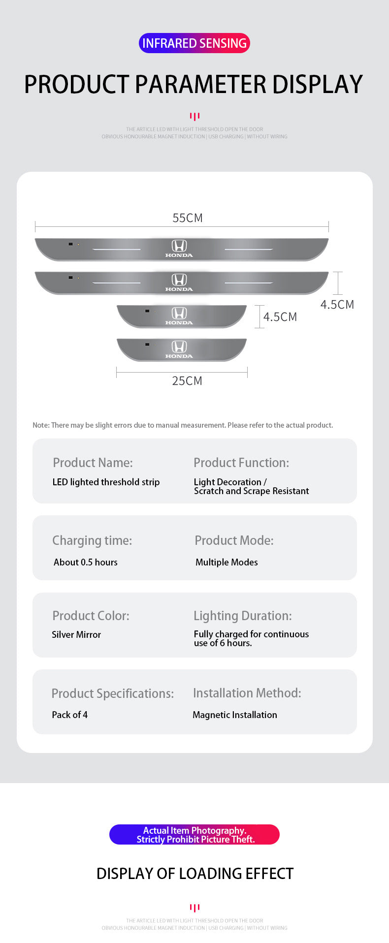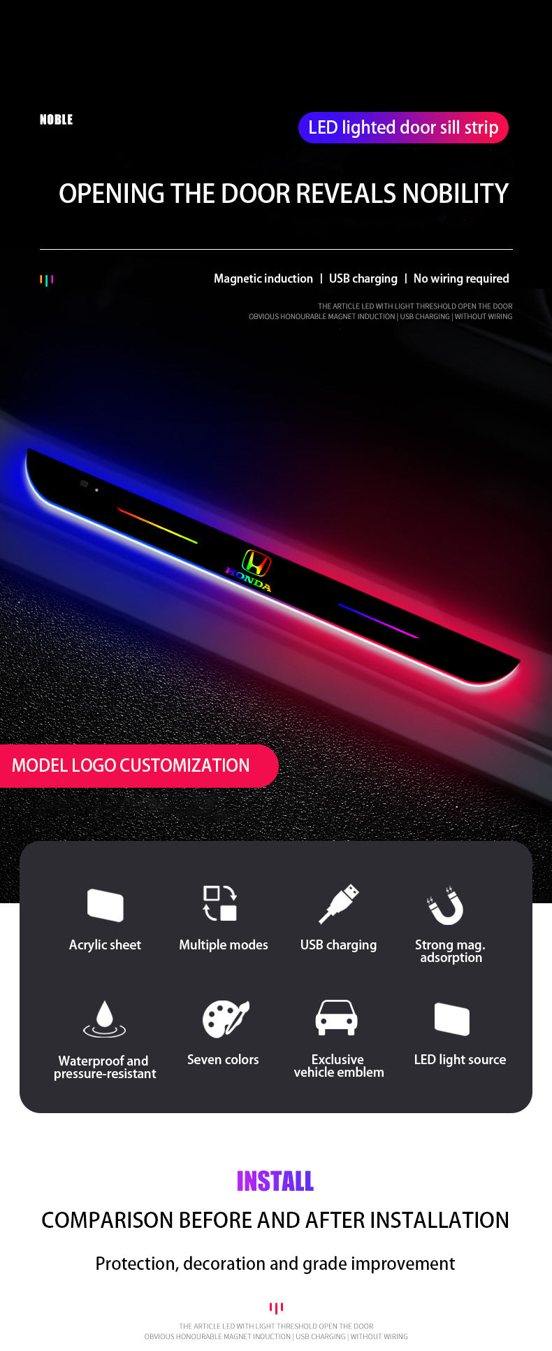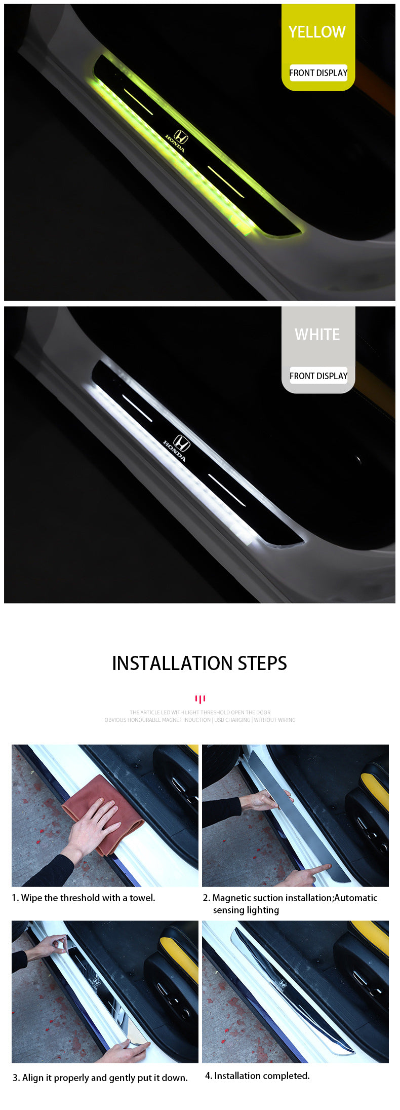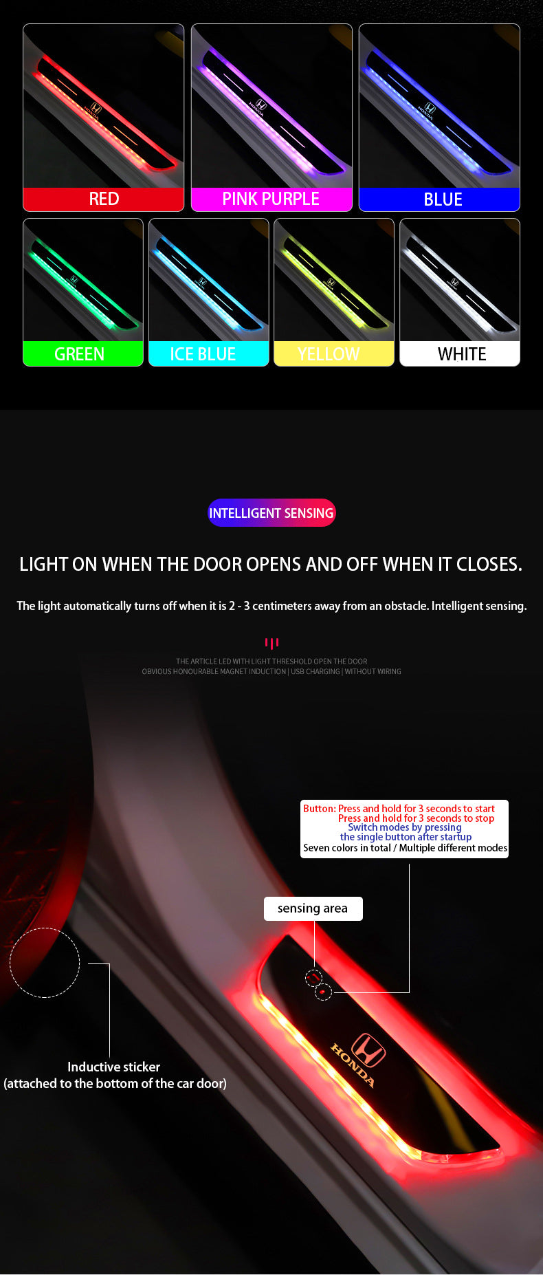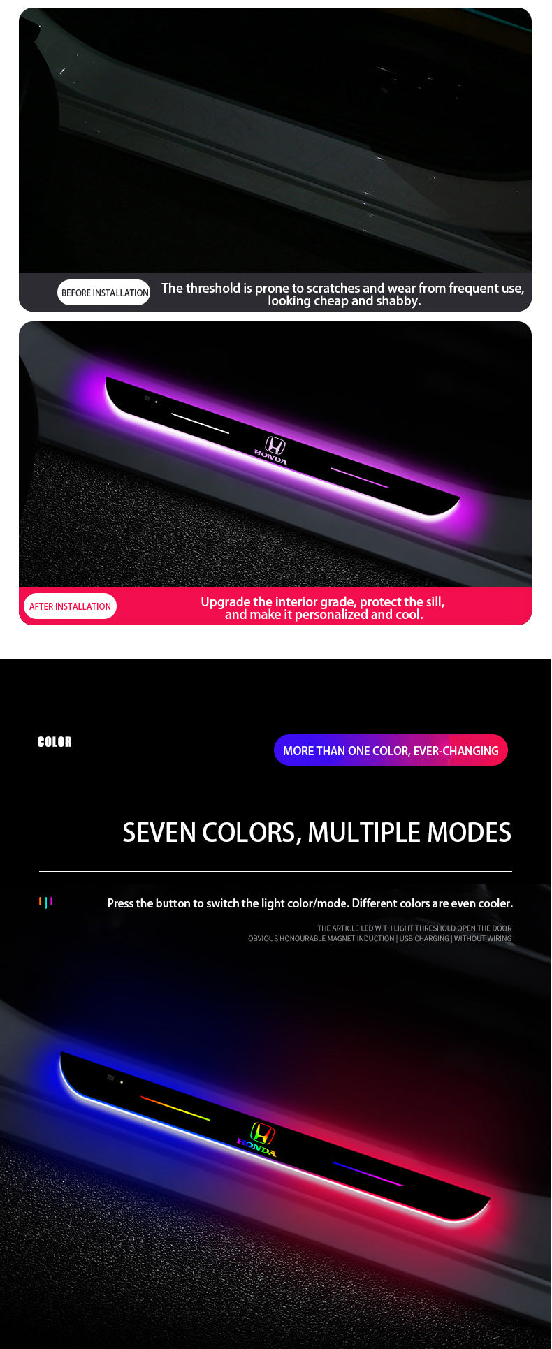 Wireless LED Color-Changing Ambient Door Sill Lights - Auto Welcome Projection Scuff Plate with Smart Motion Sensor